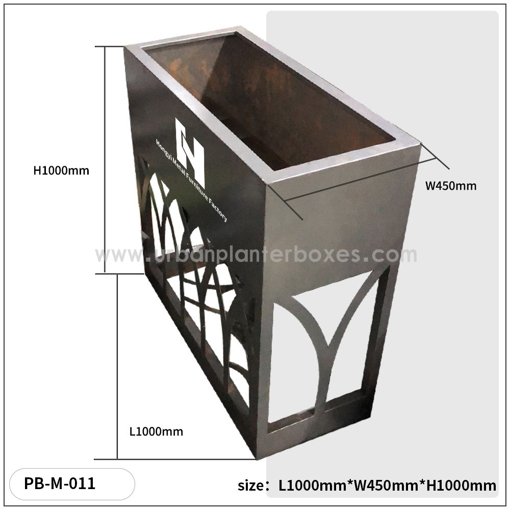Imagine a planter box that doesn’t just hold plants, but becomes a vibrant focal point of your urban space—whether it’s a bustling street sidewalk, a quiet community park, a cozy residential balcony, or a lively commercial courtyard. Our PB-M-011 metal planter box is crafted to blend seamlessly with its surroundings, balancing timeless design with the durability needed for daily outdoor use. It’s built to stand up to the elements, from intense sunlight and heavy downpours to cold winter frosts, so you never have to worry about it warping, fading, or losing its appeal over time. Using PB-M-011 metal planter box feels like unlocking a new layer of life for your space: its thoughtful structure provides ample room for flowers, herbs, or small shrubs to thrive, while subtle details (like proper drainage and soil-retention design) take the guesswork out of plant care. The materials feel sturdy yet inviting—no rough, unrefined edges, just a well-crafted piece that complements both lush greenery and urban architecture. And because city spaces come in all styles, PB-M-011 metal planter box fits whatever aesthetic you’re going for: sleek and modern for downtown plazas, warm and rustic for neighborhood parks, or minimalist and elegant for commercial storefronts. It’s the kind of planter box that doesn’t demand attention, but earns it—through how PB-M-011 metal planter box keeps plants healthy year after year, how it turns empty corners into lively green spots, and how it fits right in, like it was always meant to be part of the space. Whether you’re looking to add color to a public thoroughfare or create a small garden in a private outdoor area, PB-M-011 metal planter box turns a simple “plant holder” into something that elevates the whole urban landscape.