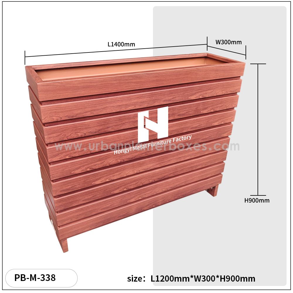 Imagine a planter box that doesn’t just hold plants, but becomes a vibrant focal point of your urban space—whether it’s a bustling street sidewalk, a quiet community park, a cozy residential balcony, or a lively commercial courtyard. Our PB-M-338 metal planter box is crafted to blend seamlessly with its surroundings, balancing timeless design with the durability needed for daily outdoor use. It’s built to stand up to the elements, from intense sunlight and heavy downpours to cold winter frosts, so you never have to worry about it warping, fading, or losing its appeal over time. Using PB-M-338 metal planter box feels like unlocking a new layer of life for your space: its thoughtful structure provides ample room for flowers, herbs, or small shrubs to thrive, while subtle details (like proper drainage and soil-retention design) take the guesswork out of plant care. The materials feel sturdy yet inviting—no rough, unrefined edges, just a well-crafted piece that complements both lush greenery and urban architecture. And because city spaces come in all styles, PB-M-338 metal planter box fits whatever aesthetic you’re going for: sleek and modern for downtown plazas, warm and rustic for neighborhood parks, or minimalist and elegant for commercial storefronts. It’s the kind of planter box that doesn’t demand attention, but earns it—through how PB-M-338 metal planter box keeps plants healthy year after year, how it turns empty corners into lively green spots, and how it fits right in, like it was always meant to be part of the space. Whether you’re looking to add color to a public thoroughfare or create a small garden in a private outdoor area, PB-M-338 metal planter box turns a simple “plant holder” into something that elevates the whole urban landscape.